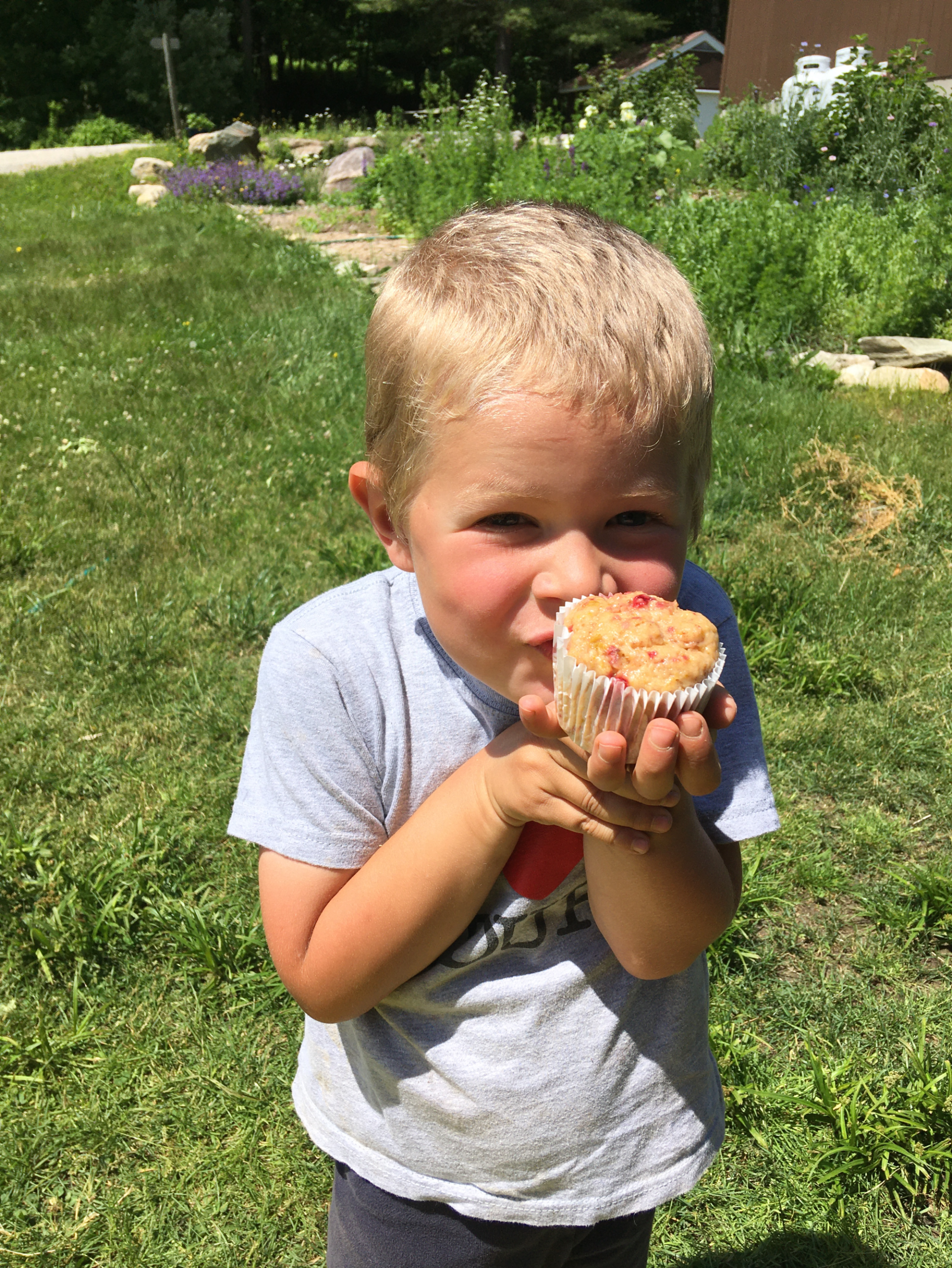 Rhubarb, a spring tonic for vitamin C and calcium, is an easy and versatile fruit to use. One of the drawbacks is that because it is so tart, most recipes call for more sugar than most other desserts. By combining the stalks with sweeter fruits, like strawberries, the sugar content in recipes can be lowered a lot… like this one! Note: This recipe is gluten free, but you can exchange the gluten free flour with wheat flour. Just realize that baking time may need to be a little longer.